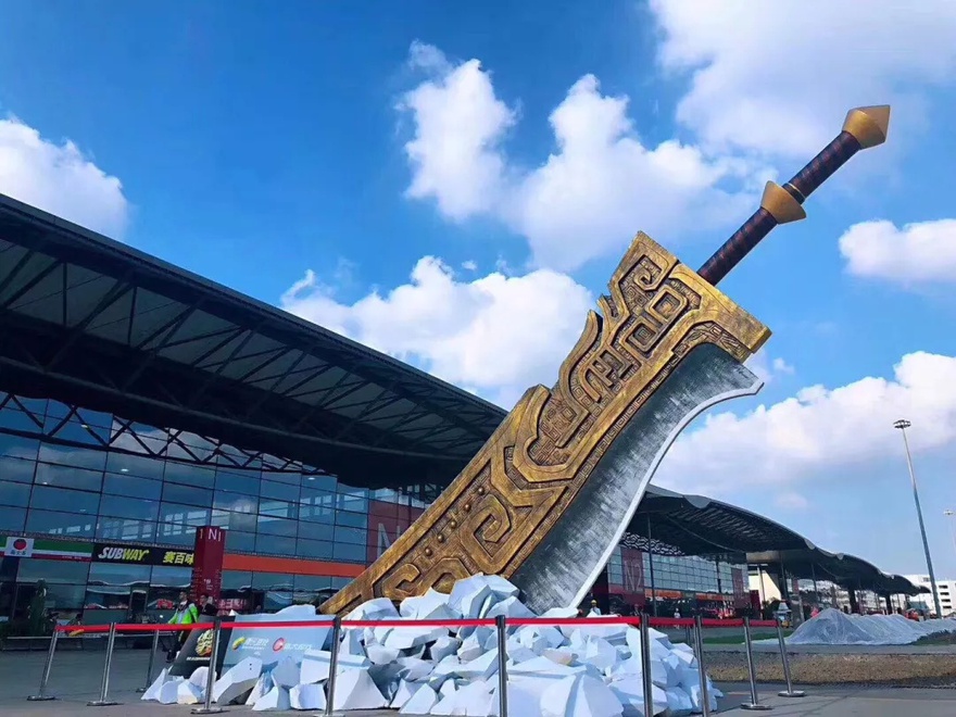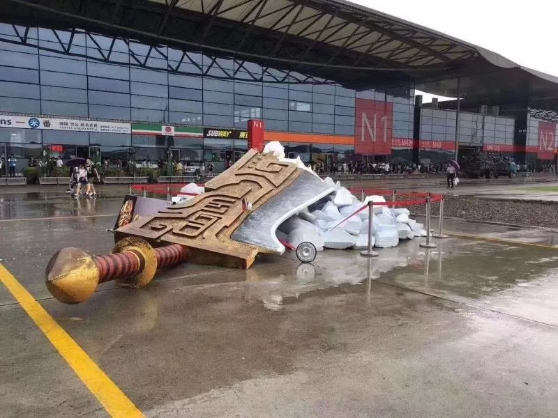 看到这个我不禁流下了感动的泪水。 03 CJ的第一天,刚好是台风云雀登陆。风雨交加中, 盛大立在门口的20米大刀倒了。哈哈哈哈哈哈哈。