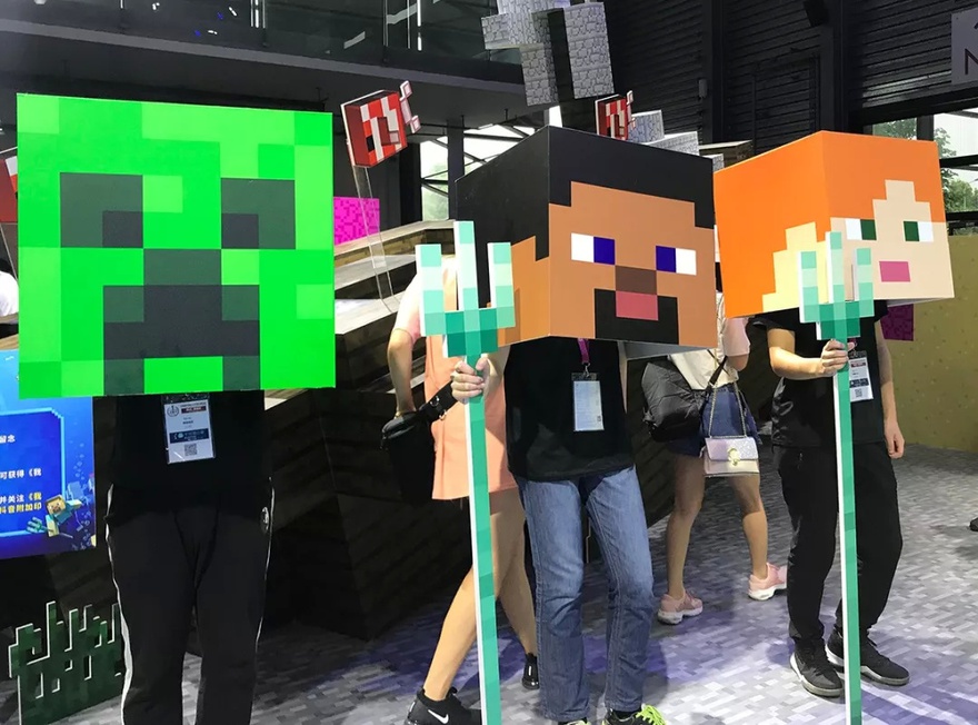 这方面猪厂就比较良心和大气。直接在N3门口放了一堆猪, 竖了个大牌子“猪场在此”。 除了旗下的端游和手游试玩体验,暴雪和我的世界也拥有一个超大的展区。网易游戏几乎占满了整个N3。