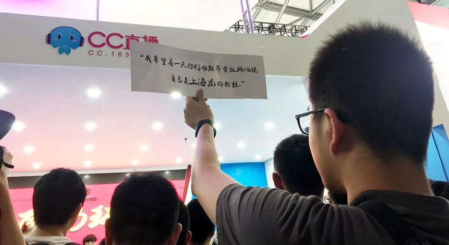 没想到,龙队现场有好多粉丝。还有粉丝举着手牌来的,上面写着: “我希望有一天你们也能昂首挺胸地说自己是上海龙的粉丝。”
