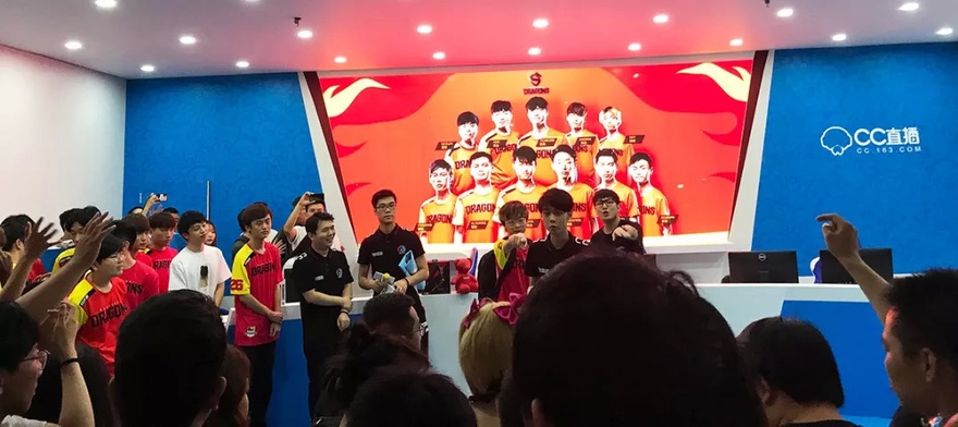 再后来我发现,这个是有开放时间限制的,过时不侯。我去了好几次,看到的都是暂停排队……可能是小姐姐晕滑梯了吧。 02 上海龙之队亮相了CC直播的展区,没错就是那个 守望40连败创造了吉尼斯世界纪录的。