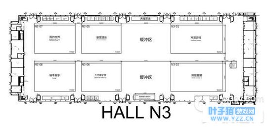 N2展馆同样是大厂云集,比如巨人网络、4399、空中网和完美世界游戏分割N2馆一半,而剩下的一半都是腾讯的天下,喜欢玩《王者荣耀》和《绝地求生》手游的玩家,不要错过这个展台的活动。 2018chinajoy N3展馆展台分布示意图