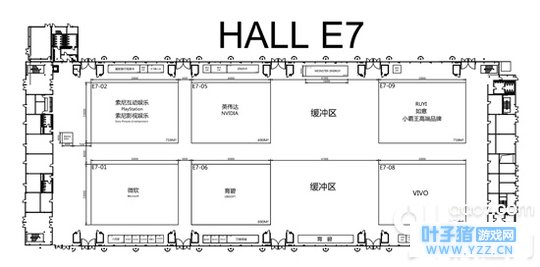 E6馆里同样聚集着很多玩家们会熟悉的厂商名字,比如网龙、乐逗游戏、世纪天城、电魂网络等。除此之外,小沃科技、百度贴吧、芒果TV等也会在E6馆和大家见面。 2018chinajoy E7展馆展台分布示意图