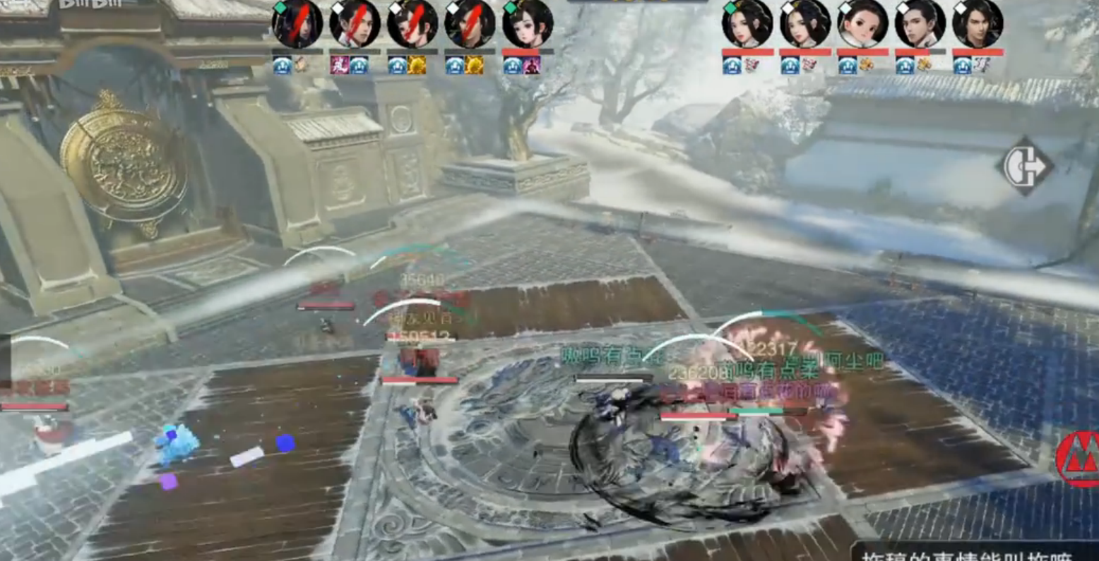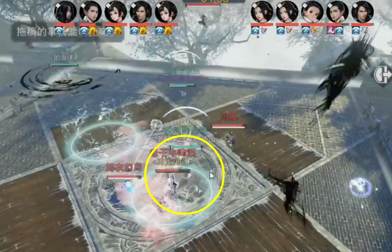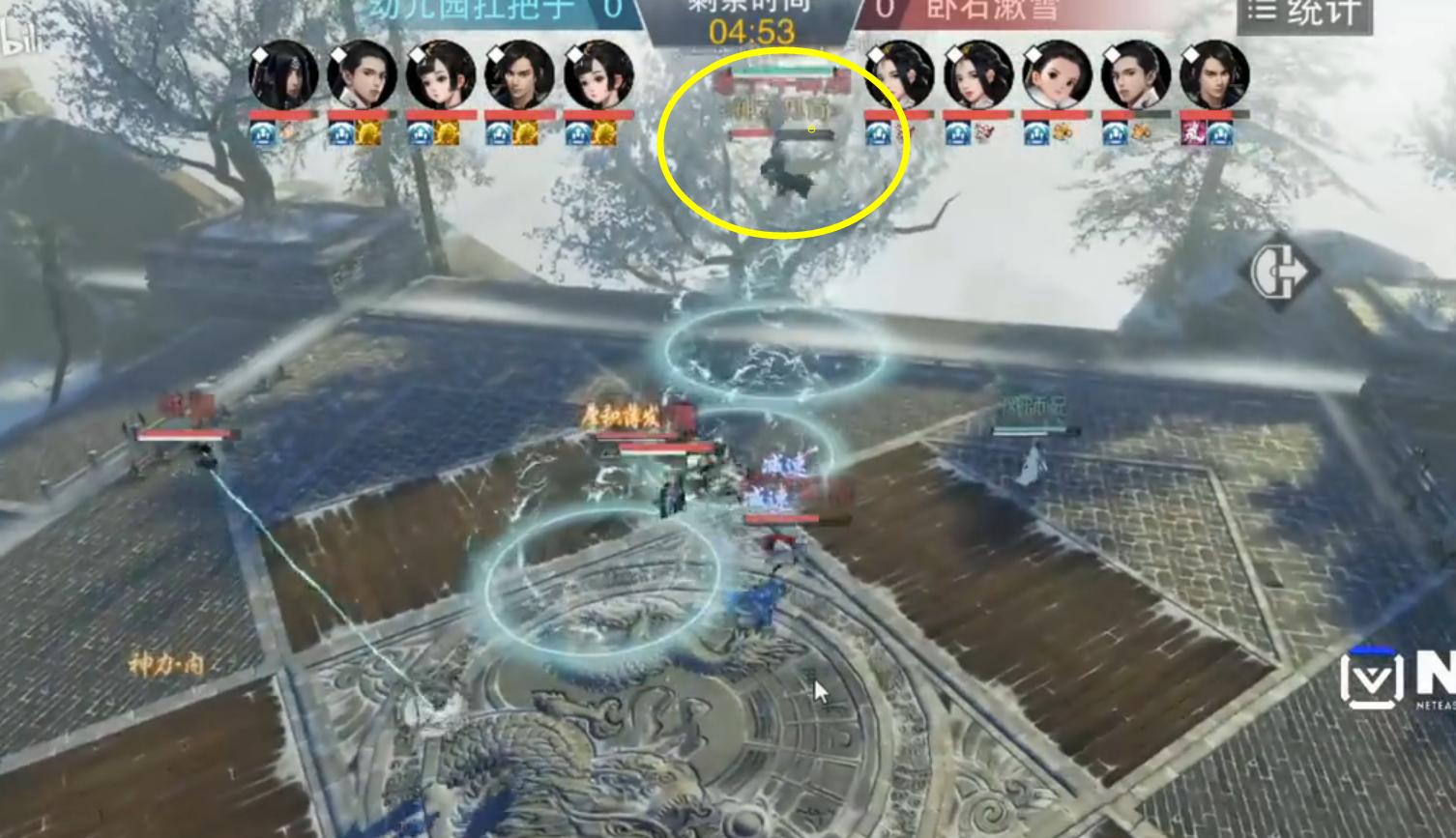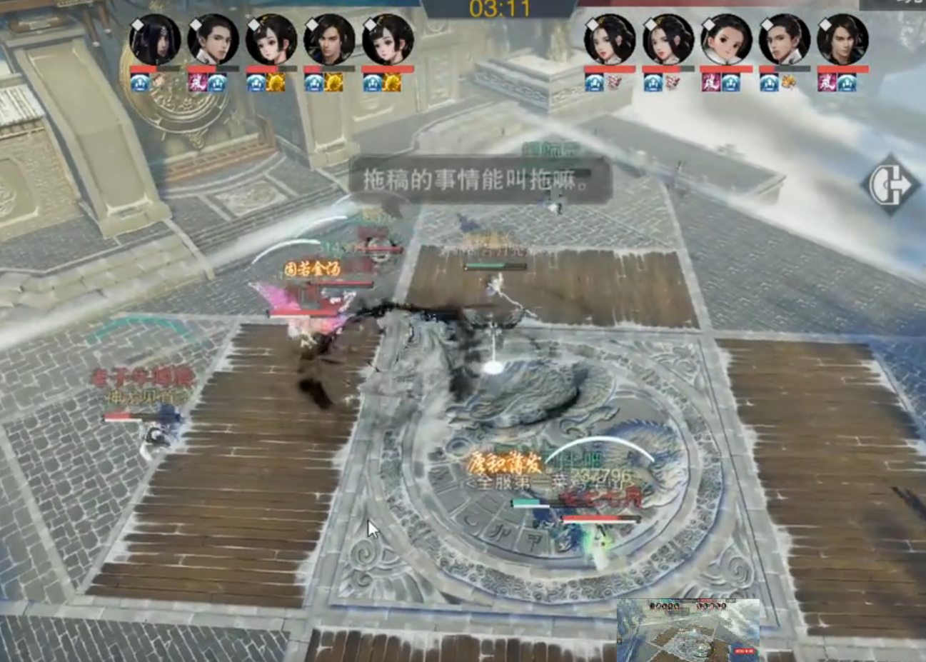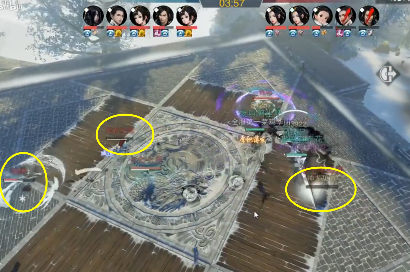 比赛进行到4分17秒,蓝方这边还是顶不住对面双武当成吨的输出,迅速减员两名选手,是我们的华山啊尘和武当风师兄,主战力被秒,奶妈的压力可像而知,现在红方全员只要集火奶妈就行了。