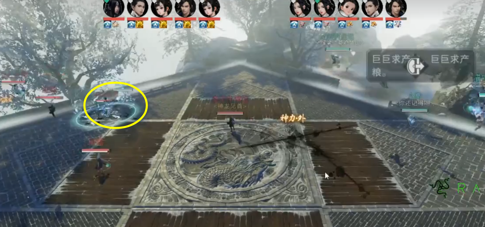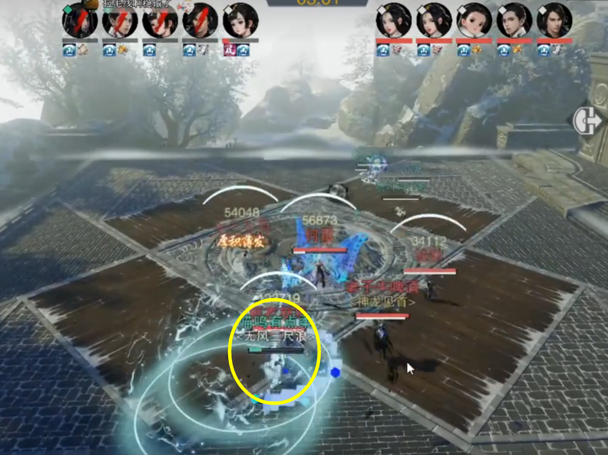 蓝方最后一奶妈又顶住了压力,成功拉起另外一个奶妈,同时快速拉风师兄,在经过一波灵活走位后,又将剩下的队友尽数拉起,但此时奶妈轻功没有运营好,尽管队友被拉起但是近乎残血,很快又被斩落。