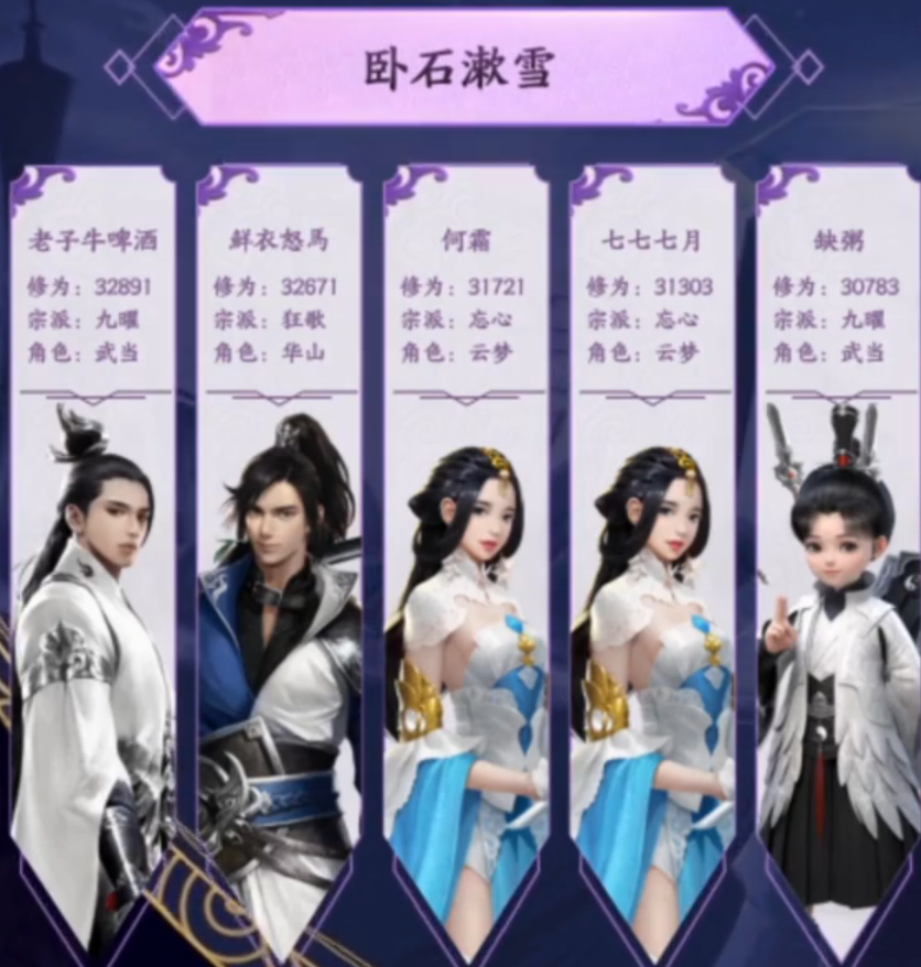 扛把子这边均修为30537,双云梦配合3大不同输出职业,华山配合暗香具有较高的秒人能力,双云梦在大赛上也是常见组合,续航能力强,云梦体高,秘籍减伤,化蝶霸体,轻功霸体,想要一下秒掉也是不太可能,风师兄3W3大武当也是队伍的输出核心点,要竟可能的选好输出环境,毕竟搭配华山这种职业,有优点也有缺点,缺点就是存活能力太弱了。