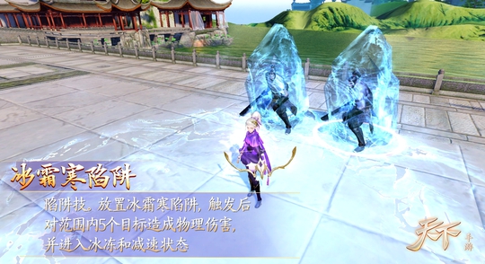 【冰霜定天下,烈焰焚万物!一名合格的翎羽,怎么只会射箭那么简单!】作为一名合格的翎羽,绝不仅仅只会精妙箭法。在《天下》手游中,翎羽除了能一击必杀,取敌将首级之外,还兼顾有陷阱机关,强控袭杀,召唤火蜥,定向爆破。翎羽山庄技能“冰霜寒陷阱”与“火蜥”,一冰一火,一静一动,二者的搭配足以打出令人惊叹的伤害效果。当敌人身中“冰霜寒陷阱”无法动弹时,一只灵活的“火蜥”带着炽热的高温奔腾而来,让敌方绝望的同时,承受万吨的伤害。请问在这样的精神与物理的双重攻击之下,谁又能顶得住呢? 冰霜寒陷阱