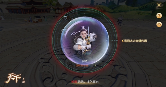 【我“熊”故我在!你看这个泡泡它又大又圆,就像这根针它又长又尖!】《天下》手游儿童节专属活动“七彩泡泡”梦幻开启!活动期间少侠可以通过日常等获得掉“神奇泡泡水”及“泡泡针”两大趣味道具。赶紧趁着节日做一回“可爱的熊孩纸”,用“神奇泡泡水”吹出美丽的七彩泡泡把其他玩家装起来吧!把泡泡吹得够大甚至吹炸还会有额外奖励赠送给你哦。最最重要的是,用“泡泡针”扎破别人的泡泡也会有神秘奖励哦。想试试你的针锋不锋利?找个泡泡,下手就对啦!