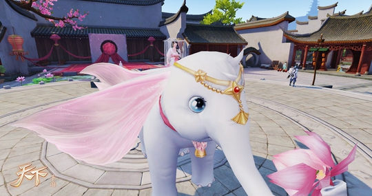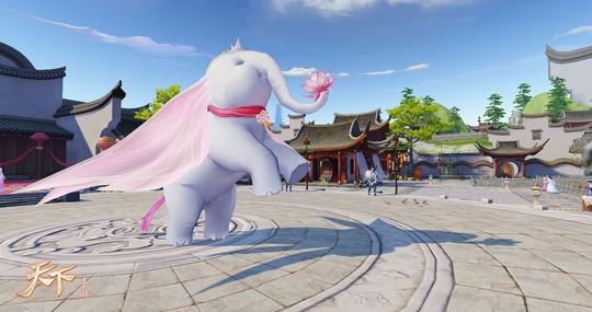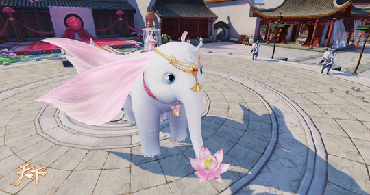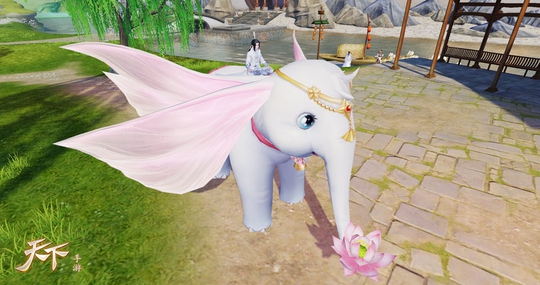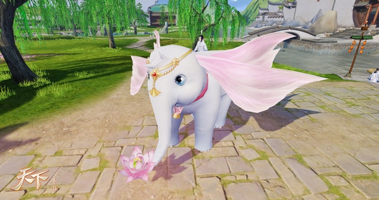 【小飞象の闪耀时刻!来自纯真童年的梦想邀请函!】《天下》手游“小象福来”坐骑本月终于被少侠们盼来了返场!花瓣一样的粉色大耳依旧舒展,鼻子上托着的莲花还是娇艳欲滴,额头的金饰也仍然闪闪发亮。不知道在离开大荒的这几个月里,小象用扑闪扑闪的大耳朵飞去哪里玩耍了呢?赶紧爬上你的专属座位,和“小象福来”一起去更广阔的天地探险吧!