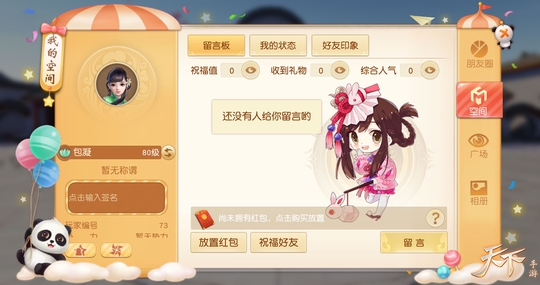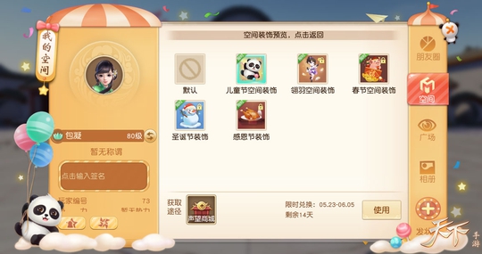 【置身童心世界!儿童节全新空间装饰突现神秘嘉宾!】糖果、气球、蝴蝶结……还有一只可爱的熊猫宝宝!《天下》手游儿童节全新空间装饰谍照曝光啦。以温柔的姜黄糖果色铺陈打底的全新空间装饰,到处都充满了精心制作的小细节。比如左上角挂着星星、蝴蝶结与节日彩纸花的空间铭牌、左下角抓着气球飘上云海的可爱熊猫、右下角偷偷探出身子的棒棒糖们......还有一只纸飞机在奋力高飞呢!话不多说,熊猫宝贝我看上你了,现在就要带你回家!