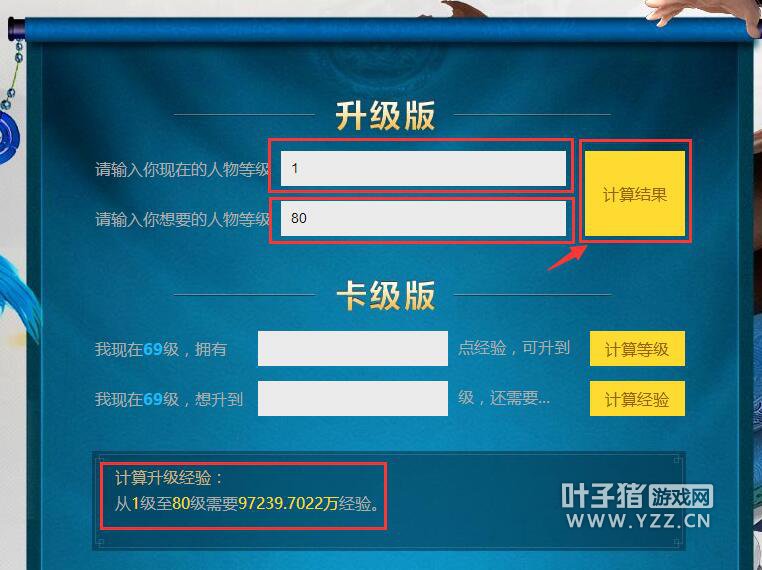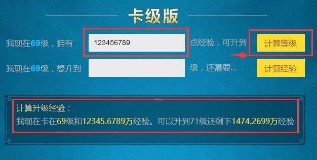 随着仙剑奇侠传3D回合第一梯队越来越多人进入了80级行列,很多新玩家都想知道到底从0级升到80级要多少经验,卡69级要攒多少经验才能升到80级等等。 为此,叶子猪仙剑3D回合工具箱再次发威,推出全新的工具--人物升级经验计算器。不管你是要卡69级,不管你是从1级升到80级,只要你想知道有关经验的问题,这里都能告诉你。 人物升级经验计算器电脑端入口:http://www.yzz.cn/sy/xjqxz3d/gj/jy/ 人物升级经验计算器移动端入口:http://m.yzz.cn/sy/xjqxz3d/gj/jy/ 经验计算器分为“升级版”和“卡级版”,下面通过简单的操作先来熟悉下。 升级版 选择好你人物的初始等级,然后再选择好你要的最终人物等级,点击计算结果就能计算最终需要多少经验。人物等级范围是1-80级。 例如:我是刚玩的,刚刚1级,我想升到80级。算了下才知道居然要40亿点经验才能满级。太恐怖了! 卡级版 卡级版又分为两种小的功能。 1、我现在卡在69级,然后输入当前我已经攒了xxx点经验,点击计算等级就能计算出最终能升到多少级。 例如:我现在卡在69级,卡了好几个月了,终于攒了123456789点经验,这些经验够我升到71级,还剩下1400多万经验。 2、我现在卡在69级,然后输入我想要升到的那个等级,点击计算经验就能计算出还需要多少经验。 例如:我现在卡在69级,打算攒够升到80级的经验再一次性升。原来还需要攒8亿多经验才能一次性升到80级,心好累啊!! 有关仙剑奇侠传3D回合人物升级经验计算器用法就介绍到这里。 人物升级经验计算器电脑端入口:http://www.yzz.cn/sy/xjqxz3d/gj/jy/ 人物升级经验计算器移动端入口:http://m.yzz.cn/sy/xjqxz3d/gj/jy/ 如果玩家在使用的过程中遇到任何问题、建议都可以在下方与我们留言评论,叶子猪将以最快的速度为广大玩家解决疑惑。 更多游戏资讯,尽在叶子猪仙剑奇侠传3D回合专区! [编辑:only小智]