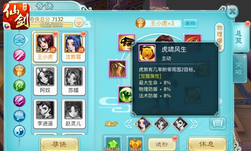 此次开放觉醒功能的两个奇侠就是王小虎和沈欺霜。王小虎的觉醒技能一个是提升自身双防,配合虎嗜和物理爆发反败为胜的“冷静”,一个是极大地提升虎煞伤害能力的“虎啸风生”。