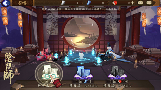 【画符召唤!百种式神精美登场】 通过画符念咒来驱使式神降鬼捉妖,是日本传说中阴阳师的日常工作,也是玩家在《阴阳师》手游中每日要完成的任务。在游戏中,玩家通过画符召唤能得到心仪式神,也可通过百鬼夜行、关卡挑战以及阴阳寮祈愿等途径来获得式神碎片兑换式神。