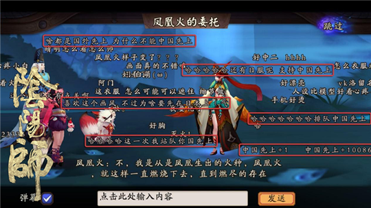 《阴阳师》手游除了带给玩家愉快的游戏体验,还能将二次元玩家带入一个遍地同好者的ACG世界。作为一款注重游戏内容的良心之作,《阴阳师》将所有的剧情都做成了舞台剧的模式,玩家每解锁一个章节,就能像追番一样看到一个新的舞台剧。每一章故事的精彩程度都值得细细琢磨和回味,每一段剧情的起承转合都恰到好处,让玩家可以在游戏里有追番的期待。 而除了追番看剧情,玩家还可以在观看同时发送弹幕,与其他玩家讨论故事走向,发表自己的观点。引入弹幕玩法是为了打造出更适应年轻玩家口味的游戏体验,如今的二次元玩家早已习惯了在各大视频网站上通过弹幕与他人及时交流,游戏中出现弹幕更符合他们的平时的娱乐习惯。 【弹幕也有站队党,吐槽文化成主流】
