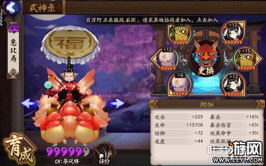 好的生命御魂都给老头和椒图了,所以兵勇只能带带五星御魂了,哈哈哈,反正能扛住一波伤害就好了,接下来老头和椒图可以奶回来。控制二火,前面讲到过配合兔子刚好够控制一波。 辅助:五星地藏椒图
