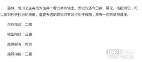 阴阳师斗技大后期将被六星式神统治,而绝大部分的决胜点也将在斗技buff叠了许多层之后展开。后期的六星输出式神也需要相当的生存能力,以防止被一波流克制。因此,生存类御魂必将占据一部分御魂空间。 各位大佬可以注意到的是,在这里攻略君给了两位AOE五星推荐。这与目前椒图与地藏御魂的强势是分不开的。在考虑椒图连线的基础上,单段AOE输出可以有效避免由于地藏引起的输出浪费,同时起到全队压血线的作用。 而对于单体输出而言,则需要队友式神对椒图进行两回合的控制配合才能有机会进行斩杀。 斗技大后期六星输出类式神推荐!by:心向阳光的狼 荒川之主: