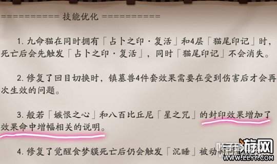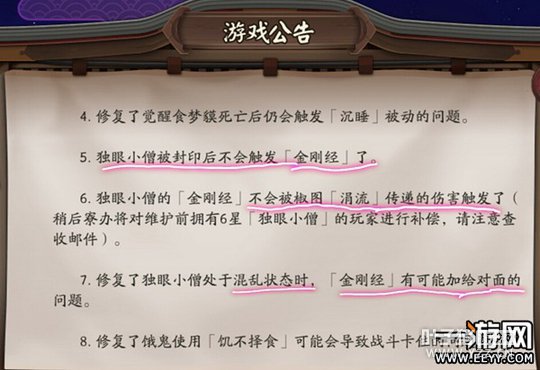 【涓流】 分担伤害无法触发金刚经 【复活】 占卜之印复活优先消耗且不重置猫尾印记 【封印】 般若技能增加了效果命中增幅的描述 比丘尼同理 【混乱】 小僧不会叛变了! 个人看法:如果椒图的链子不能触发金刚经 小僧现在的被动还不如以前一火固定;目前椒图链子也不能触发返魂香的?椒图功能性没有以前强了.. [编辑:叶子猪小秘书]