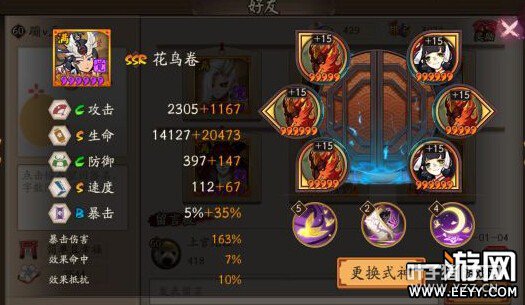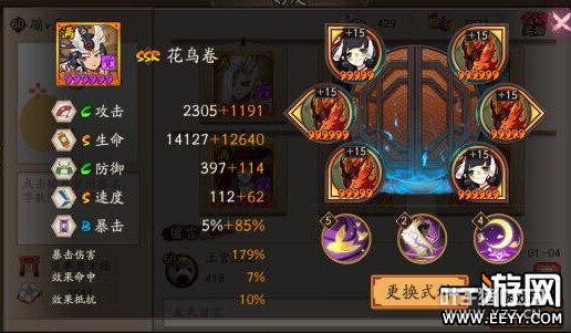 先普及一个花鸟卷的常识 花鸟卷所有治疗效果都享受暴击 普攻回血 三技能大招 三技能大招的HOT 都是看花鸟卷本人的暴击率 首先狰属性还分堆生命的和堆暴击的 主要是六号位变化 先上两套御魂数据图对比 生命狰