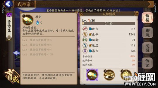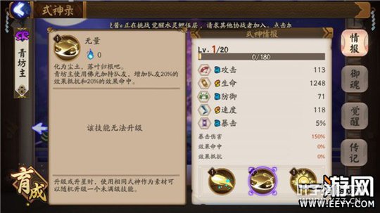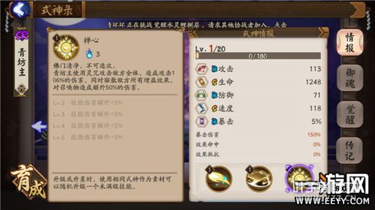 三技能:禅心 佛门清净,不可造次 青坊主使用灵咒攻击敌方全体,造成攻击106%的伤害,同时驱散敌方所有增益效果,对召唤物造成额外50%的伤害。