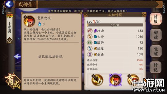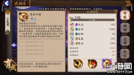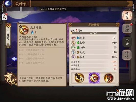 定位:从技能上看,小鹿从过去的可辅助,可输出的一个多向定位,变成现在只可输出的一个单向定位。 过去没有变化前的技能就不说了,新【复仇怒火】技能是,场上每阵亡一个单位,鹿娘吸收【阵亡目标的40%的攻击】。【最多吸收强化3次】 讲道理,小鹿的这次改动偏向后手向。小鹿技能有很多蛋疼的地方。 第一:一般阵容上2个攻击式神就是最多了,再就辅助式神,治疗式神,或者打火机。鹿娘是吸收阵亡目标攻击的40%,你吸收一个打火机能吸收多少攻击?自己翻看一下自己的辅助式神,都多少攻击。你能吸收多少攻击又? 第二:最多吸收强化3次,讲道理,一般5个式神,我死了2个的时候,直接就退了,我遇到90%的局都是这样,甚至好多局都是死一个主力,基本就退了。吸收强化3次,只有打一些麒麟的时候,送一个跳妹之类的式神,上去送狗死,或者小白送包子,能用的久一些,正常斗鸡,基本用不到。 再来讲一下新技能【鹿角冲撞】 【老技能】