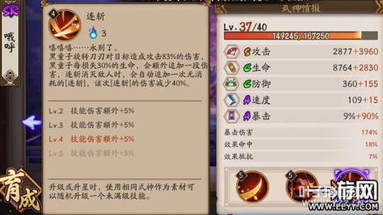 局限性 黑童子只有在直接受到攻击才能触发被动,即椒图没有办法触发被动。阴阳师的被动,和一目连盾爆炸的伤害都是可以触发的 吃所有形式的控制,即被嘲讽,混乱都没有办法发动被动反击。 减伤40%是累积的,第一段伤害是1的话,第二段0.6,第三段是0.36。但针女伤害不衰减 血量和防御很低,对6星式神来说,防御分界线是397,黑童子大概比别人脆10%多 起手伤害低,游戏里没有自残的手段,很难搭配高速先手阵容 优点 反击伤害高 反击段数。最低一段,残血四段。横向对比大天狗4段33%,黑童子第一次攻击有83%,连斩之后再连斩也有每段49.8%的输出。第三段伤害才29.88,比大天狗略低。 有着全式神最高的面板攻击,图上的装备是鸟的一套,满级黑童子3300多的基础攻击 考虑到黑童子的优缺点, 御魂搭配 首先如果有椒图 针女 比较方便入手,而且的确相性非常好,如果像图上这样的全输出针女是可以在,自身黑童子在3段或4段伤害的时候,反击直接灭队的,这个当然要考虑整个区的综合实力水平,老区斗鸡都是6星辅助或者5星辅助不能直接照搬这个经验。 要不要堆肉和堆抵抗,各位仁者见仁,这也和式神搭配有关系,在打来打去都是雪女的情况下,堆抵抗的收益很差,不如搭配雨女,(我本人雨女没有练起来,还排在妖琴师和桃花妖后面) 其他输出御魂,破势,网切,心眼,40%的伤害衰减太高了,和针女难以抗衡,如果有搭配这些御魂的特别思路请告诉我 狰 反击只反击普攻,能和自身被动一起触发,但普攻有很大的波动区间,以困17的狸猫作为对象,伤害从5000多到8000多都有。 薙魂 薙魂能触发被动,满技能的期望触发率是10%,局限性在于小黑就必须堆生命和抵抗,只有一个位置的攻击能不能打出足够的收益来是很大的问题。 这个是我满级吸血姬 攻击 抵抗 暴击的面板。差不多属于被普通妖刀姬在斗鸡里面没有伤害加成的情况下砍不死的状态。 黑童子堆肉的收益比较低,而且吃软控,我个人认为薙魂流不适合黑童子。 [编辑:叶子猪小秘书]