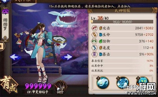 觉醒前S级攻击坐稳第一梯队输出的位置,这个没有任何疑问。 S级速度112,对比:茨木112 天狗110 妖刀111 鸟113 酒吞113,速度上不存在软肋。 B级生命属性,优于妖刀、夜叉,在暴力输出队伍中算硬的。 唯一的软肋是5%的暴击,由于输出烟烟罗定位必须吃暴击,该软肋可以视为氪金的信号。 结论:SSR级的属性,极限输出条件更为苛刻。 [编辑:叶子猪小秘书]
