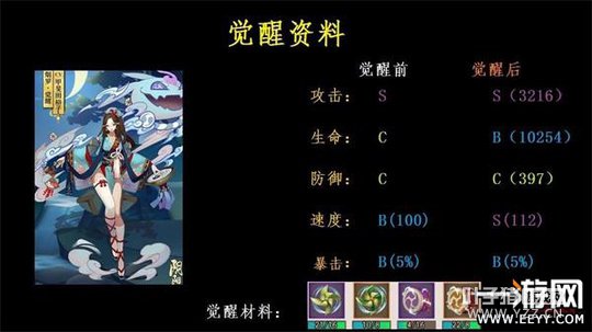 技能理解要点: 1:觉醒后的吃下目标是和眩晕效果一样的。无法驱散。 2:大技能的前5段是单体并不是AOE。最后一段才是AOE。 式神定位:单体输出混群体输出。 单体控制。 式神优点:单体多段不论带针女还是走控制都有高几率触发佩戴御魂效果。而且自身被动有减伤+控制。 被克制:控制式神(被控了神也救不了你)带地藏的小伙伴(多段就怕这个) 搭配阵容:控制+椒图+奶+打火机+拉条/其他 觉醒资料: