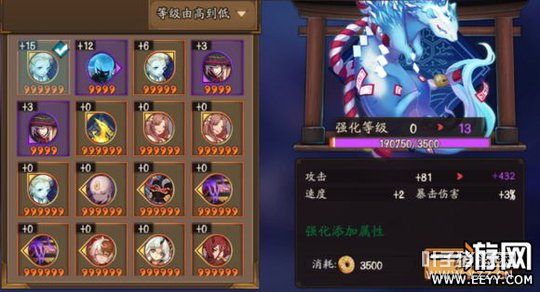 这里是反喂御魂的截图。反喂御魂指的是某个御魂的副属性没有加到几次你想要的属性上面。那么就可以把这个御魂当狗粮喂给其他胚子。会损失一些经验。但是强化费用需要的却很少。