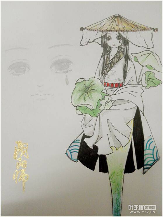 皮肤名字:玥荷雨落 所属式神:雨女 点评:寥寥几笔把雨女的忧伤、落寞画了出来,让人觉的她的背后全是故事,还是悲剧。