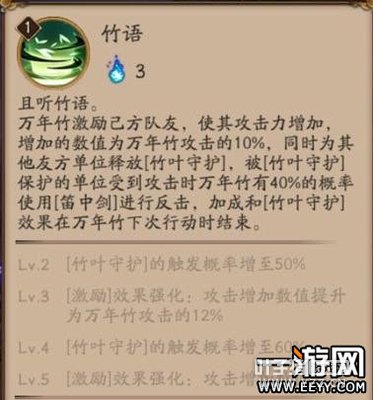 阴阳师万年竹技能觉醒面板一览,作为在神龛里面兑换获得的SR式神,万年竹技能怎么样呢?本篇就带来图文介绍。 正式服在3月16日更新 获取方式:神龛商店兑换,需要4500御札,限购1次,所以技能升级都要黑达摩才行。 属性面板,生命偏脆,速度中规中矩