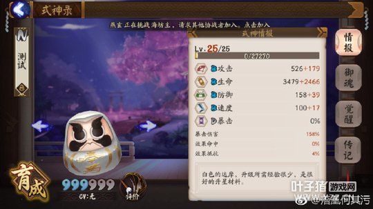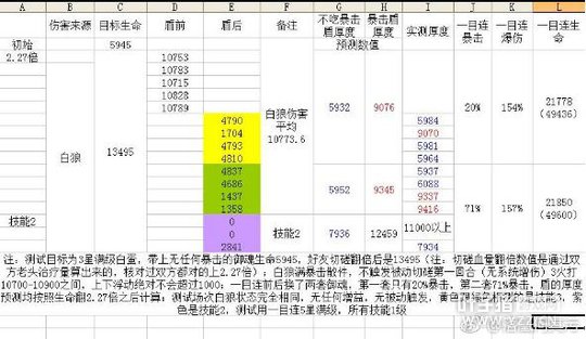 【关于一目连的盾是否吃暴击的测试】——有点长请务必看完 微博来源@落凰何其污 刚刚看了投稿有辟谣说盾不吃暴击,吓了一跳,由于po主没详细说怎么测的,并且他测试觉醒7盾需要大麒麟+小麒麟这样攻击两次才破,我照搬试了下发现,麒麟是有可能暴击有可能不暴击的,也就是说,如果需要2次攻击才能破盾的话,我们无法得知第一段攻击是否暴击,会影响测试结论,所以拉了好友切磋测试(其实是舍不得体力_(:з」∠)_) 注意事项: 1、在测试开始前,我们计算了切磋生命翻倍数值,通过双方老头的治疗量跟面板生命的对比,确定翻倍是2.27倍,之后的盾厚度计算也是基于翻倍后的生命计算 2、测试用的受击目标是3星满级白蛋,暴击0,排除掉测试“暴击属于谁”这个问题的干扰因素,且带了加生命的御魂,保证不会被射死,有效防止伤害溢出对测试数据的干扰 3、测试用攻击式神是5星白狼,每次测试都是开始于切磋的第一回合,无任何增益减益加成,无白狼被动加成,测试技能永远是大招,白狼面板暴击+106,绝对满暴,散件非破势 4、场上有辉夜姬的减伤加成,但是由于测试全程都是只切磋一回合,白狼行动后就退出,所以辉夜姬减伤常驻,不影响结论 5、一目连5星满级,所有技能1级,前后换了2套御魂,一套低暴击,一套高暴击,尽量保持了两套御魂加成后的血量差不多,爆伤也差不多(后来想想其实只要一套就够了……),一目连暴击并没满,配合白蛋的0暴击跟白狼的满暴测试出了2技能究竟吃的是谁的暴击 6、技能2只测试了3次,但是已经足够证明结论:吃暴击,并且是吃的一目连的暴击 7、白狼伤害有浮动,但是浮动差距不足以影响结论 结论:一目连的盾吃暴击,不管是技能2还是技能3,并且吃的是一目连自己的暴击 附上测试数据图,欢迎小伙伴们继续讨论,并给这个不一定成熟的测试提供建议(可能会有其他干扰项我没有想到) 图一是具体测试数值,图二三是一目连两次的御魂数值,图四是本次的受害者