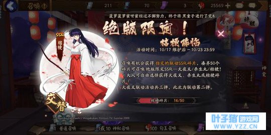 阴阳师期待已久的犬夜叉二期联动SSR式神桔梗,终于在正式服登录还有开放获取了,然而和常规的SSR联动一样,本次联动SSR桔梗的碎皮出货率一样被玩家吐槽了,简单总结就是十连一片很正常,没三百蓝票别想了。
