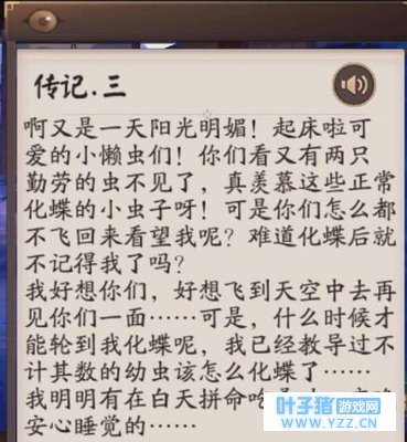 阴阳师里很多式神的传记都很有意思,一方面揭露式神的诞生和过往,另一方面也在性格上丰满了式神的形象,而很多式神都有反差萌,比如花花、小松丸等,而即将上线的新SR於菊虫就是一个拥有双重虫格的式神,而导致这种情况的原因就在传记里,我们一起来看看具体内容吧!