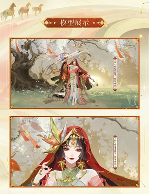 骏马奔腾 迎新岁,华裳着身 赴新旅 踏蹄扬沙,揽 沙漠奇珍 釉鹤振翅 ,衔落琉璃彩枫 全新马年生肖系列皮肤