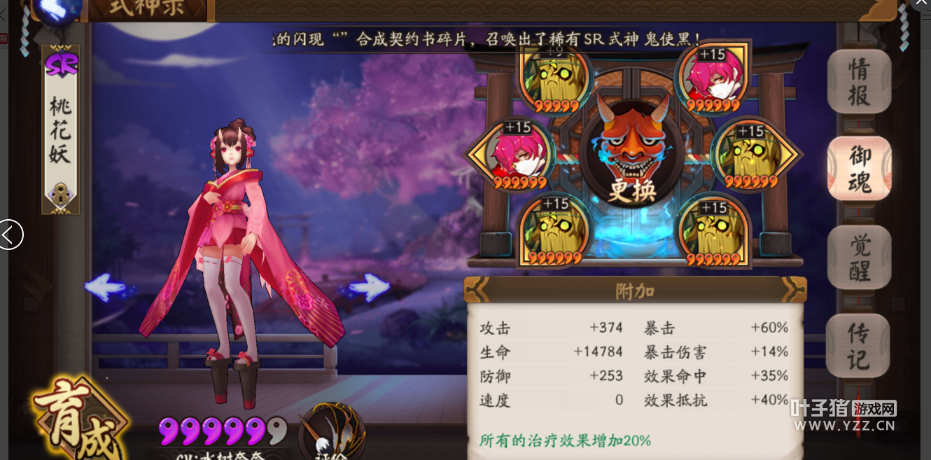 阴阳师手游新版本中,有不少式神进行了更改调整,使得式神得到一定强化或削弱,下面,我们来讨论一下其中的一位式神——桃花妖。 桃花妖这次唯一的改动就是单体奶暴击的时候治疗量的30%会变成群体奶。请看图: 周一中午斗技随便截了一张,截的有点模糊,可以看到我桃花妖的治疗目标是我方茨木,暴击26052,群奶没暴击9379,群奶暴击17247 5星桃花妖的属性图如下。4树妖+2反枕,反枕6号位暴击,2、4都是生命。不敢想象6星桃花得有多可怕! 4树妖+2反枕,反枕6号位暴击,2、4都是生命。之所以选择反枕是因为桃花S的防御成长,30%防御会比15%生命耐打的多。如果没有好的树妖的话用4地藏也是可以的。打算升6星后把2号位换成速度,100的速度实在是太慢了,而且奶量控制在3万左右就好,太高了会溢出(6星脆皮的血量在3万左右)。 所以我可以一脸正经的宣布桃花的崛起~一个能单奶能群奶能复活身板还特别硬的存在。而且是瞬间治疗,你的暴击率与你的劝退率成正比! [编辑:不服憋着]