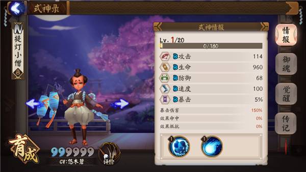 式神名称:提灯小僧(轻型灯) 式神声优:悠木碧 式神故事: 式神情报: 式神点评:提灯小僧,N级式神卡,容易获取,属性中庸,无法觉醒, 2技能是2点鬼火消耗的AOE技能。属于第二梯队狗粮式神卡。式神技能介绍: 式神技能点评 1技能,普通攻击,无特点。 2技能,该技能属于低费AOE技能(消耗2点火),满级技能可造成攻击力130%的伤害,这个数值已经超越了作为R级式神卡——河童,大河之歌第一回合的伤害(河童的伤害是随回合的增加而增加),鬼火消耗只有2点,所以可以说提灯小僧第一回合比河童强。但提灯小僧由于局限于其作为N卡无法觉醒和基础属性中庸的原因,故上场率很低。式神搭配及用途 目前AOE中,第一类是多段依靠针女御魂打伤害或依靠控制御魂控制,第二类是类似于河童,梯度提高输出伤害。 通过对提灯小僧技能技能的分析,可以看出,此N级别式神卡属于只能坚挺第一回合的式神卡,虽然有满技能130%的攻击力的伤害,但局限于其作为N卡无法觉醒和基础属性中庸的原因,很少有玩家会将其作为主要式神进行培养,故提灯小僧在PVP和PVE中的出场率并不理想。 属于第二梯队的狗粮式神卡。式神御魂推荐搭配 通过对式神技能的点评和搭配及用途的分析,提灯小僧独立于游戏两类AOE式神,属于单段无增长AOE式神,在PVP和PVE中的出场率并不理想。 故暂无任何御魂推荐搭配。式神获取途径: 百鬼夜行契约书碎片合成,破碎的符咒召唤 了解更多相关信息,请前往http://news.yzz.cn/ku/musicman/ [编辑:Hi、何同學]