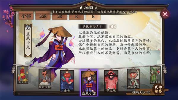 式神名称:盗墓小鬼 式神声优:新谷真弓 式神故事: 式神情报: 式神点评:盗墓小鬼,N级式神卡,容易获取,属性中庸,无法觉醒,只可普攻,无鬼火技能,delicious,适合食用,属于第一梯队狗粮式神卡。式神技能介绍: 式神技能点评 1技能,普通攻击,无特点。式神搭配及用途 无论是PVE还是PVP,都没有这个式神的一席之地,该式神存在的意义就是被其他式神吞噬,以达到强化其他的式神的目的。式神御魂推荐搭配 无任何御魂推荐搭配。式神获取途径: 百鬼夜行契约书碎片合成,破碎的符咒召唤 了解更多相关信息,请前往http://sy.yzz.cn/yys/ [编辑:Hi、何同學]