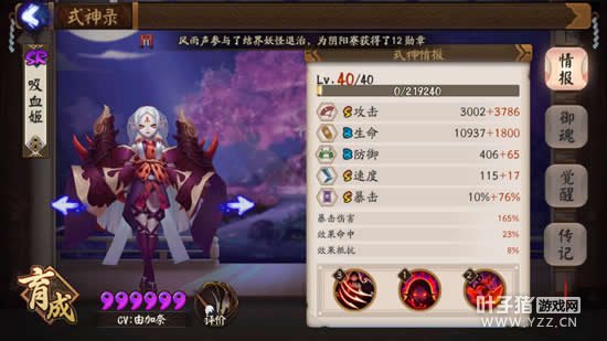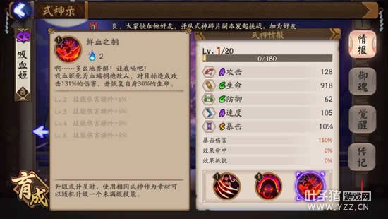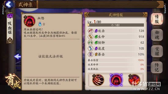 觉醒之后S的攻击保证了吸血姬的攻击成长,115的初始速度在输出类式神中也算是翘楚,整体三围面板非常不错。