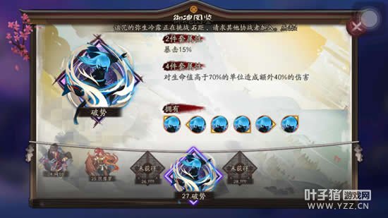 ⒉ 破势四件套加暴击两件套。二号位速度,四号位攻击加成,六号位选择暴击。破势吸血姬需要一定的速度,用来跑行动条,可以有多次出手机会。破势效果高爆发可以打残对方式神甚至秒杀。