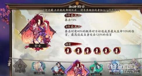 理由:针女所触发的最大生命10%的伤害是可以触发般若被动的,狂暴状态下两段攻击与针女的效果也十分契合,增加输出的同时又加强封印概率。建议二号位带速度,四号位效果命中,六号位暴击,副属性优先选择效果命中,其次速度。这样能够保证先手以及稳定性。