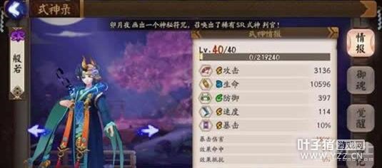 如图可以看到面板属性完全不输输出型的ssr式神,3136的攻击和大天狗、两面佛是一样的,还要高于姑获鸟一些。114的速度还是比较快的。