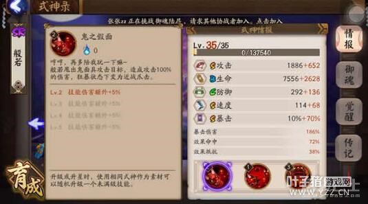 二技能:嫉恨之心,核心技能。没有这个被动,般若可能也只能充当花瓶了。上次更新之后对这个被动添加了可以受效果命中影响的说明(虽然之前有玩家测试过他是吃效果命中的),所以这次算是稍稍加强了。觉醒之前,只能封印御魂效果,觉醒之后可以封印御魂效果和被动技能。