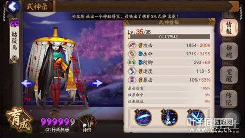 一 式神定位 伞剑的忽略百分之20的防御的特性,配合协战被动,相当于自带网切的效果。姑获鸟的三个技能,每个都十分完美。 35级属性图,与SSR相比,基本持平。 我将姑获鸟定位为完美的输出式神。再说下个人认为与目前主流的输出式大天狗,小黑,茨木的对比.大天狗由于其4段大招的特性,在游戏中后期配合针女,输出会超过姑获鸟,由于本非酋没有,所以不多陈述。茨木作为ssr中人气超高的一拳超人,不得不说确实有其变态之处,大蛇高层无法自动。除此之外,SSr在获取以及养成方面相比SR卡还是有一定差距,茨木相比于依赖针女的式神更难成型,需要投入的成本更高。小黑作为最容易入手的主流输出式神,主要缺点仍然是对单一目标的乏力以及boss战。 而纵观游戏的各个阶段,姑获鸟在斗鸡,觉醒,大蛇,狩猎战,带狗粮等游戏的每个部分,都能做到高效的输出。