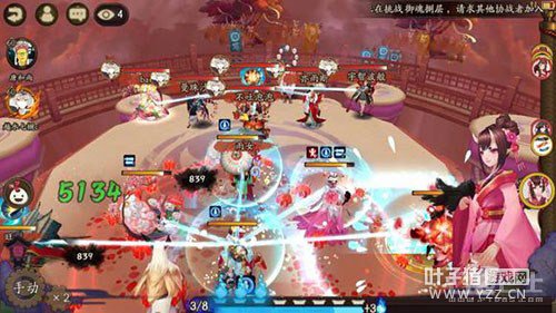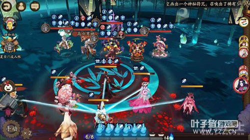 ①第一回合:对方椒图,彼岸花,老头,雨女,般若。我方犬神,椒图,雨女,樱花妖,桃花。犬神带的是招财猫犬神,樱花妖是镜姬。可以看见,我方每次式神行动之后,我方犬神都会对彼岸花进行反击,然后回复鬼火,供樱花妖使用,对面彼岸花的输出虽然高过我方犬神,但由于樱花妖的减疗效果,我方最终以奶量取胜。