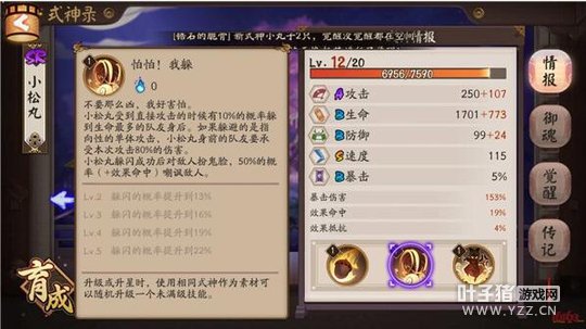 觉醒后,ABBSB。 面板非常的一般,唯一的S是速度属性,115的初始,按照S速度里面比较也算一般。 面板优势:115的初始速度 面板劣势:感觉有种整体发育不良的态势 基础技能一览 以下以及以上图片都来自另一位版主@清逸喵~ 因为是新的式神,还是先看技能后分析~ 技能二: 怕怕,我躲!