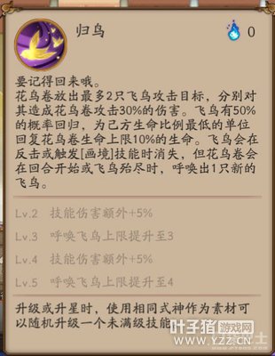 阴阳师一直以来被吐槽是最废SSR的花鸟卷,在体验服最近一次的更新中调整了技能,不仅普攻回血能达到群奶的效果,还能为队友抵消控制效果,可谓面面俱到。那么阴阳师花鸟卷加强后好不好用呢?下面就一起来看看阴阳师花鸟卷技能调整分析吧。 花鸟卷技能调整 ※归鸟技能调整为: ※花鸟卷放出最多2只飞鸟攻击目标,分别对其造成花鸟卷攻击30%的伤害。飞鸟有50%的概率回归,为己方生命比例最低的单位回复花鸟卷生命上限10%的生命。飞鸟会在反击或触发[画境]技能时消失,但花鸟卷会在回合开始或飞鸟殆尽时,呼唤出1只新的飞鸟。 ※lv.2 每只飞鸟伤害额外+5% ※lv.3 呼唤飞鸟上限提升至3 ※lv.4 每只飞鸟伤害额外+5% ※lv.5 呼唤飞鸟上限提升至4 设计师观点: 普攻可以打出多段(反击还是保持现有的1下,并且飞鸟会被消耗),平衡普攻和反击的效率,使得其他御魂也可以列入使用的考虑。 ※画境技能调整为: ※花鸟卷有概率(效果等同于花鸟卷触发抵抗的50%概率)牺牲1只飞鸟为友方单位抵消1次冻结、眩晕、睡眠、变形、沉默、嘲讽、混乱、牢笼束缚等的技能和御魂效果。除此以外,花鸟卷在行动结束后有20%概率进入画卷中的世界,增加20%的行动条。 ※lv.2 进入画卷概率增至25% ※lv.3 进入画卷时增加25%的行动条 ※lv.4 进入画卷概率增至30% ※lv.5 进入画卷时增加30%的行动条 设计师观点: 给花鸟卷追加类似团体抵抗的能力,在对方使出控制类技能或御魂能力时,有概率消耗一只鸟帮忙抵挡一次,概念类似于将自身的效果抵抗分享给队友了。飞鸟的保护效果触发判断是在队友的抵抗判断之后的,确保飞鸟不会被无效的消耗。在敌方使用群体控制技能的时候,如果我方有多只飞鸟,是有可能消耗多只飞鸟帮多名队友抵挡控制的。 游戏内实测 1、普攻的飞鸟,最多4只。每只一段普攻。最少1只,不会有0飞鸟的情况出现。 2、触发狰或者轮入道反击时,会减少一只飞鸟。 3、被动技能抵挡控制时,会减少一只飞鸟。(进入画境不减少) 4、画卷抵挡控制的几率,是花鸟触发抵抗几率的50%。与是否真的触发抵抗没关系。举例:假设对方100%命中的凤凰火,花鸟的抵抗是100%,那么凤凰火用大招时,触发画境的几率是50%X50%=25% 个人建议 1、御魂属性方面可以速度、抵抗、生命。也可以速度、生命、暴击。套装从日女、轮入道、地藏、珍珠、树妖里选。狰和骰子鬼反击只能1段,且减少1只鸟,不推荐(如果继续用狰,效果和以前版本的花鸟的质量相差不大,只是略强一点)。 2、新版花鸟打兵勇效果会不错,打食梦貘、凤凰火的话,得用高抵抗轮入道,或者三味。所以练一只成品花鸟,并不是场场都能上的,得提前考虑好。 总结 改版前花鸟之所以弱,主要体现在两方面,一方面是功能性单一(只会加血),另一方面是御魂可选择性单一(只能用狰)。 改版后两者都有改善,但效果并不好。虽然普攻多段可以考虑通过御魂来增加一些控制元素,被动也增加一些解控(防控)能力。 但想要第一个功能性,得靠御魂配合。 想要第二个功能性需要4号抵抗属性配合。 综合下来,花鸟治疗量一般、解控能力一般、控制能力一般(带日女)。所有能力加起来,看上去很多样化,其实总质量也一般。 再加上现在比以前更吃黑蛋,新版花鸟很难让人喜欢的起来。