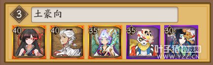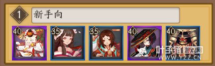 第一套(新手向):椒图/山兔+惠比寿+兵俑/其他控制+打火机+输出式神 说明:新手玩家比较容易培养的就是几大R卡和SR卡,打火机座敷和辉夜姬有哪个选择哪个。奶妈选择惠比寿因为前期性价比高,其他奶妈都要6星才能发挥实力。 输出式神是什么强力放什么,一般比较主流的包括了吸血姬、姑获鸟、荒川之主、彼岸花、茨木、小鹿男、荒、酒吞童子等。