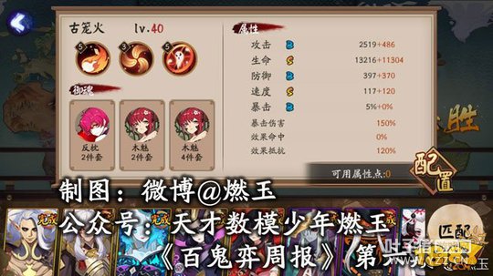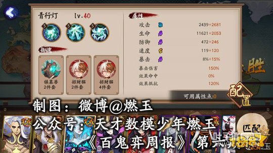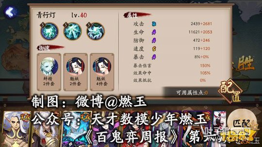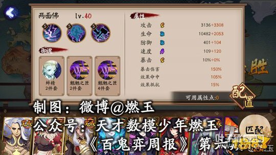 为了比对方彼岸花先行动,带了1点速度 其他式神 大家可能还想知道一些式神怎样搭配,这里简单推荐几个: 1. 魍魉两面佛