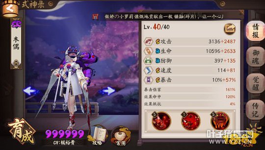 5、辉夜姬 木魅(5星满级足够,这个式神不需要速度,属性以生命抵抗为主,基本都能撑到最后~) 上面几个式神都需要鬼火,座敷的缺点就是给不了阵容的防御力和抵抗效果,辉夜姬在斗技里面当然更好~ 这套阵容有个漏洞,就是在镰鼬拉条之后,兵俑有36%的概率火不够大招,可以考虑辉夜姬带火灵,不过我就是要拼人品~ 可以看到本套阵容的输出式神都选择暴伤,而暴击有没有满,之前一样可以打出很稳定的效果,而在体验服加入神祭之后,利用:
