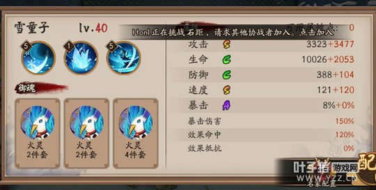 雪童子(满速满命中剩下攻击的火灵套)副输出