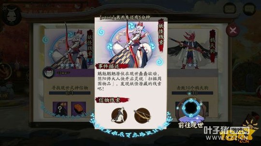 1、点击式神图片(可以和好友共享任务),线索就是白狼和弓箭